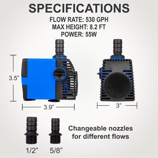 660 GPH Bottom Feed Submersible Water Pump - 60W Energy Efficient, Low-Suction