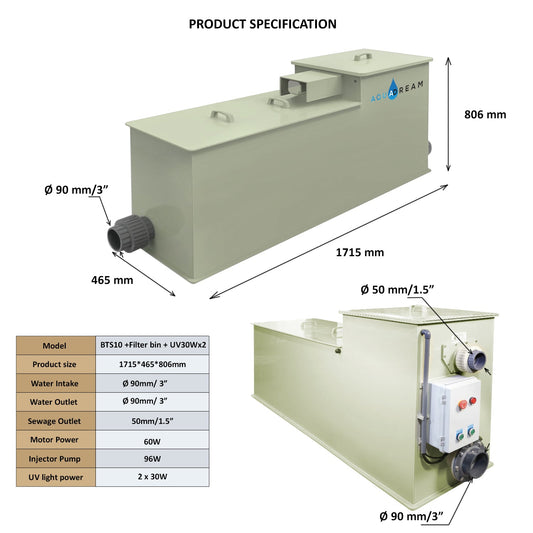 Koi Pond Drum Filtration System 5 Tons 1300 GPH